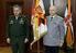 7 纵轴成 50 ( 图 ), 过多切除肱骨头将影响肩袖的张力, 并可能造成大结节的撞击 人工肱骨头要高于大结节且后倾 30 ~40 ( 只有在陈旧性肩关节后脱位时, 才可将肱骨头后倾角减少至中立位 ), 以增加关节稳定性 截骨方向为肱骨外旋 35, 垂直于水平面 ( 图 ), 用宽骨刀或电锯由前向后截除肱骨头 切除的骨量不要太多, 应仅切除肱骨头的关节面部分 这一过程中, 要避免损伤大结节及其前方的冈上肌腱 肱二头肌长腱 再进一步清除肱骨头下 后方的骨突 对肱二头肌间沟的骨突及肉芽组织也要清理 根据所使用的假体的工具进行扩髓和锉髓, 扩髓进针点应在肱骨头截面的偏外侧, 在肱二头肌沟后 1cm 多数病人肱骨较疏松, 需防止骨折 插入试模 ( 图 ), 检查假体高度, 后倾及头厚是否合适, 挑选与截除的肱骨头高度匹配的肱骨头假体型号 去除试件